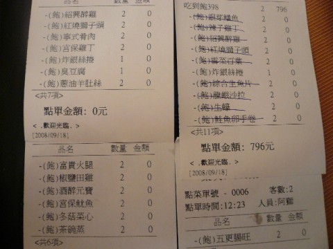 忘記我是不是都有羅列上來了,這是我們點的菜單,很厲害吧!當他是熱炒100,25道都要2500元了,我們才花了8百多元~划算划算真划算.